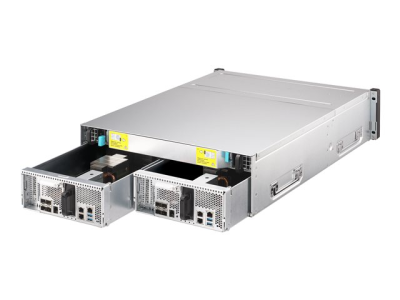 | Inkluderade tillbehör | 64 x skruvar med platt huvud (för 3,5-tums HDD), 64 x platta huvudskruvar (för 2,5" HDD), 2 st. batteribackupenheter, 2 st. strömkablar, E2-serie skensats |
