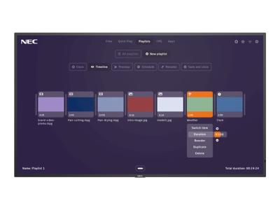 | Egenskaper | ARC (Aspect Ratio Control), säkerhetslåsuttag (kabellås säljs separat), atomatiskt larm vid e-post, Crestron Connected Compatible, NaViSet Administrator 2, AMX NetLinx support, PJLink, utformad för användning 24/7, ASCII Control Commands, avtagbar logo, funktion som gör vit kopia, fabrikskalibrerad gamma, fabrikskalibrerad intensitet, fabrikskalibrerad RGB, fabrikskalibrerad enhetlighet, fabrikskalibrerad vit punkt, CEC Support, kompatibel med Raspberry Pi Compute Module 4, schemalagd timer |