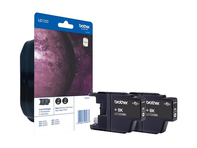 Brother LC1220BKBP2 - 2-pack - svart - original - blister - bläckpatron - för Brother DCP-J525W, DCP-J725DW, DCP-J925DW; MyMio MFC-J825N