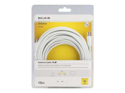Belkin - Antennkabel - IEC-kontakt hane till IEC-kontakt hona - 15 m - koaxial - vit