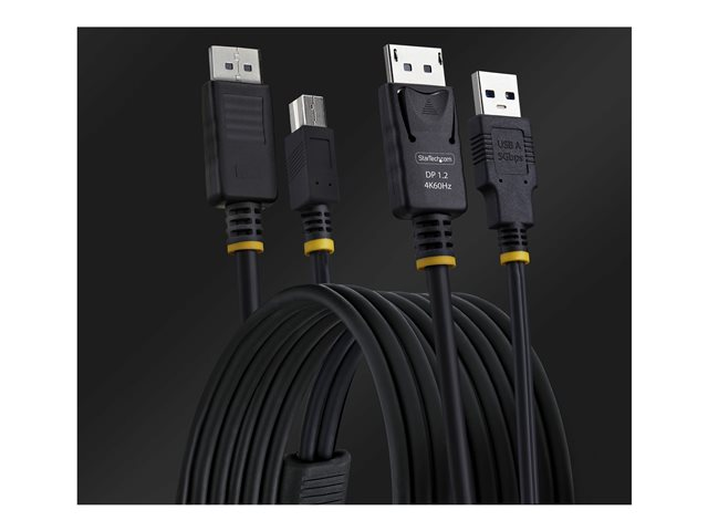 Den 1,8 m (6 ft) långa KVM-kabeln för DisplayPort och USB 5 Gbps från StarTech.com är ett viktigt verktyg för anslutning och styrning av flera datorer med ett enda tangentbord, en enda bildskärm och en enda mus. Denna KVM-kabel stöder standarderna USB 3.2 Gen 1 och DisplayPort 1.2, vilket garanterar tillförlitlig prestanda. Med dataöverföringshastigheter på upp till 5 Gbps kan användarna njuta av snabba interaktioner utan märkbar fördröjning.