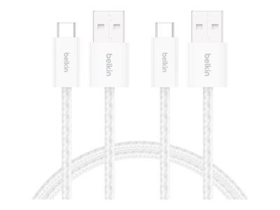 Belkin BoostCharge - USB-kabel - USB (hane) till 24 pin USB-C (hane) - 1.5 m - flätad kabel, USB Fast Charge (15W) - vit (paket om 2)