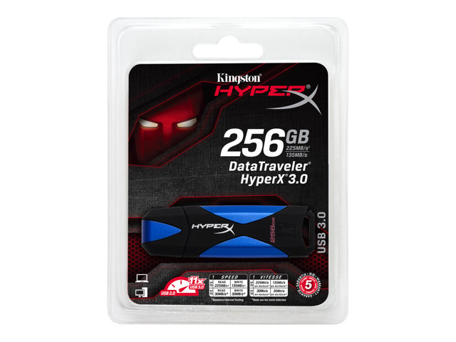Kingston DataTraveler HyperX 3.0 - USB flash-enhet - 256 GB - USB 3.0 - svart, blå DTHX30/256GB