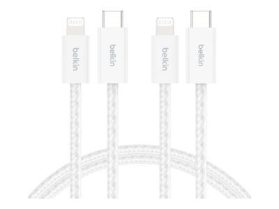 Belkin BoostCharge - Lightning-kabel - 24 pin USB-C hane till Lightning hane - 1.5 m - vit - snabbladdning (paket om 2)