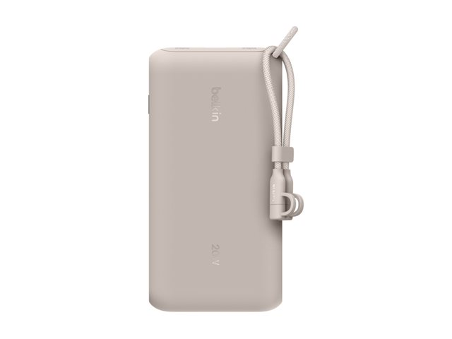 Belkin BoostCharge - Power bank - med display - 20000 mAh - 20 Watt - PD - 3 utdatakontakter (2 x USB-C, USB) - på kabel: USB-C - sand
