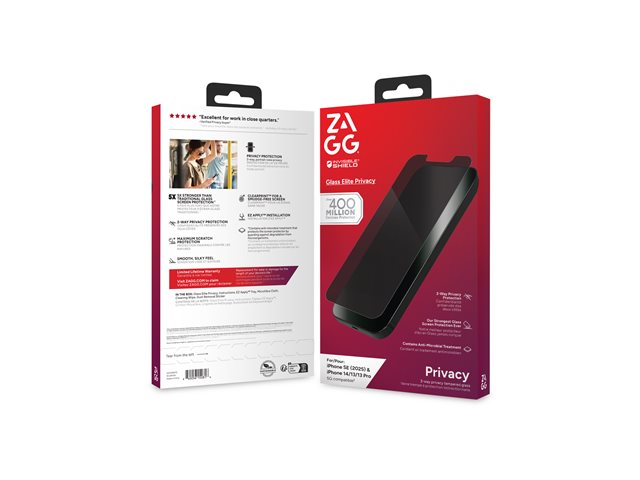 ZAGG InvisibleShield Glass Elite Privacy - Skärmskydd för mobiltelefon - glas - med sekretessfilter - 2-vägs - för Apple iPhone 13, 13 Pro, 14, 16e, 17e