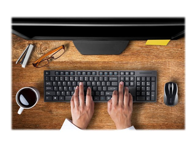 Kensington Pro Fit Low-Profile Desktop Set - Sats med tangentbord och mus - trådlös - 2.4 GHz - fransk - svart
