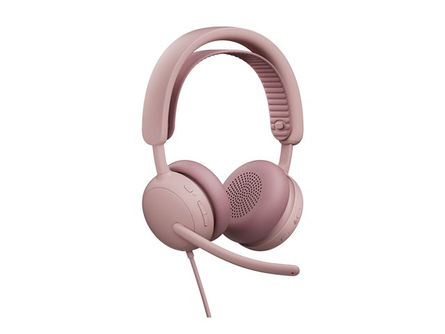 Logitech Zone Wired 2 for Business - Headset - på örat - kabelansluten - aktiv brusradering - rosa - Certifierad för Microsoft-teams