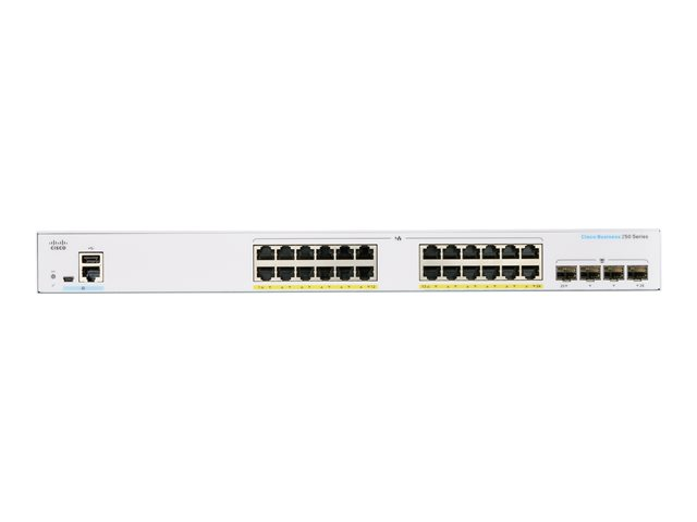 Cisco Business 250 Series CBS250-24FP-4G - Switch - L3 - smart - 24 x 10/100/1000 (PoE+) + 4 x Gigabit SFP - rackmonterbar - PoE+ (370 W) CBS250-24FP-4G-EU