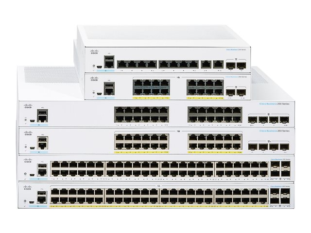 Cisco Business 250 Series CBS250-8P-E-2G - Switch - L3 - smart - 8 x 10/100/1000 (PoE+) + 2 x kombination Gigabit Ethernet/Gigabit SFP - rackmonterbar - PoE+ (67 W) CBS250-8P-E-2G-EU