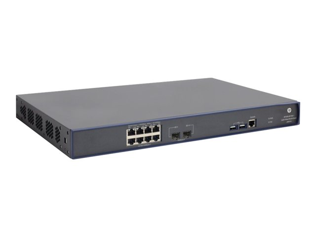 HPE 830 8-Port PoE+ Unified Wired-WLAN Switch - Switch - Administrerad - 8 x 10/100/1000 (PoE+) + 2 x Gigabit SFP - rackmonterbar - PoE+ JG641A