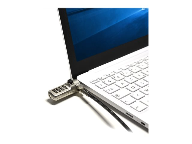 - Security cable for laptop, desktop, monitor, video projector and devices with a trapezoid security slot