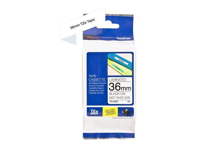 Brother TZe-M261 - Matt - självhäftande - svart på matt vit - Rulle 3,6 cm x 8 m) 1 kassett(er) bandlaminat - för Brother PT-P950; P-Touch PT-3600, 530, 550, 9200, 9400, 9500, 9600, 9800, D800, P900