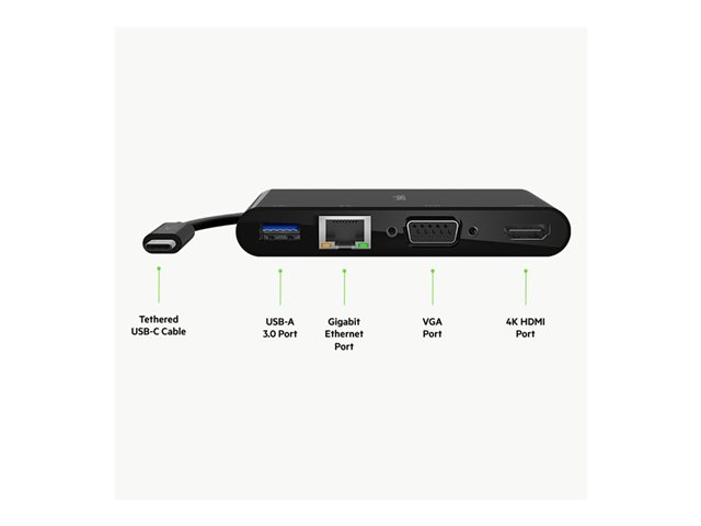 Belkin - Flerportsadapter - USB-C - VGA, HDMI - 1GbE