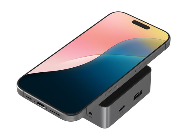 | Egenskaper | Spegelläge, upp till 10 Gbps dataöverföring, aluminiumhölje, halkfri bas, kompakt, Qi Wireless Charging (15 W) |