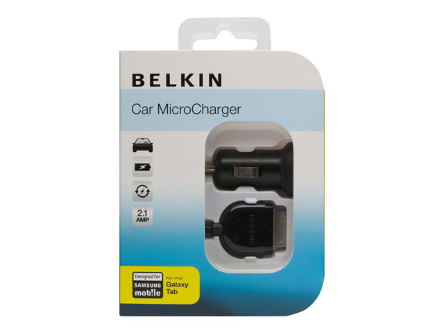Belkin Micro Car Charger - Strömadapter för bil - 2.1 A (USB) - på kabel: 30-pin Samsung - för Samsung Galaxy Tab, Tab 10.1, Tab 10.1N, Tab 10.1V, Tab 7.0, Tab 7.7, Tab 8.9, Tab WiFi